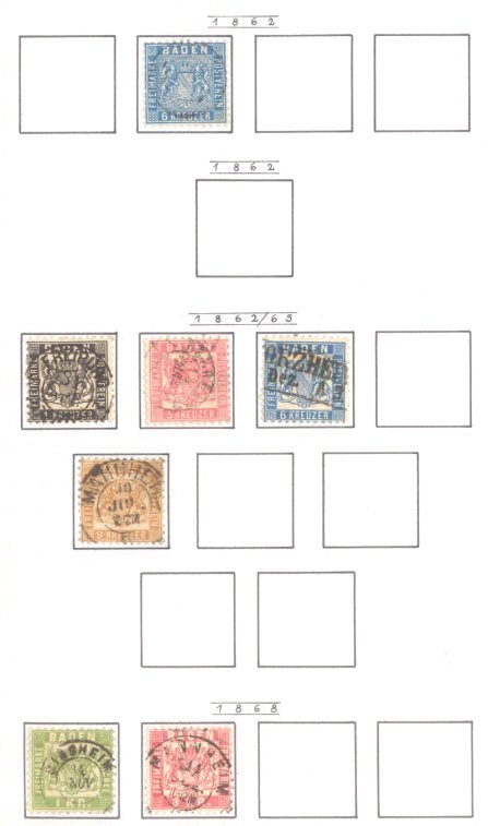gestempelte Sammlung von 16 verschiedenen Werten. Dabei die Michelnummer 5 mit Plattenfehler II !! + 1 Ganzsache ab SCHWETZINGEN. Alles abgebildet im Internet!