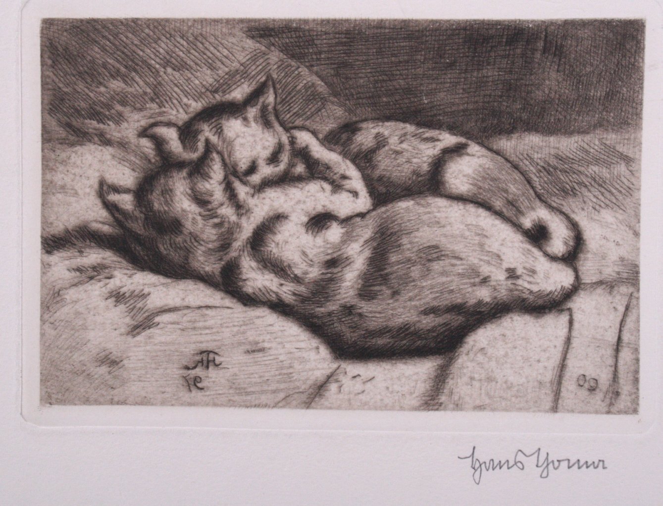 Hans Thoma 1839-1924, 2 Katzen - Verkauft / Sold