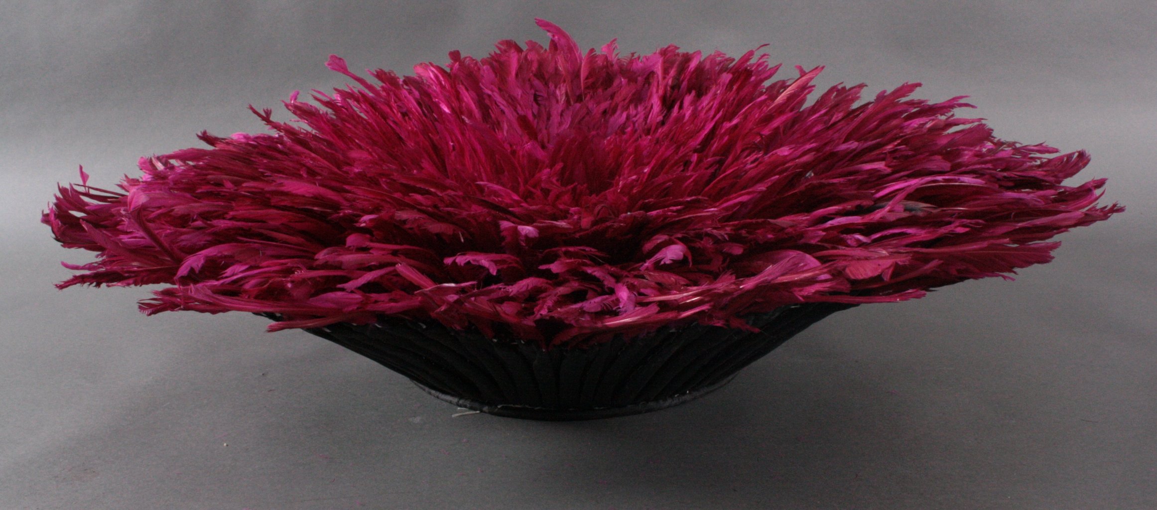 Erste Hälfte des 20. Jahrhunderts. Runder indianischer Wandschmuck mit violetten Federn, ca.85 x 25 cm.