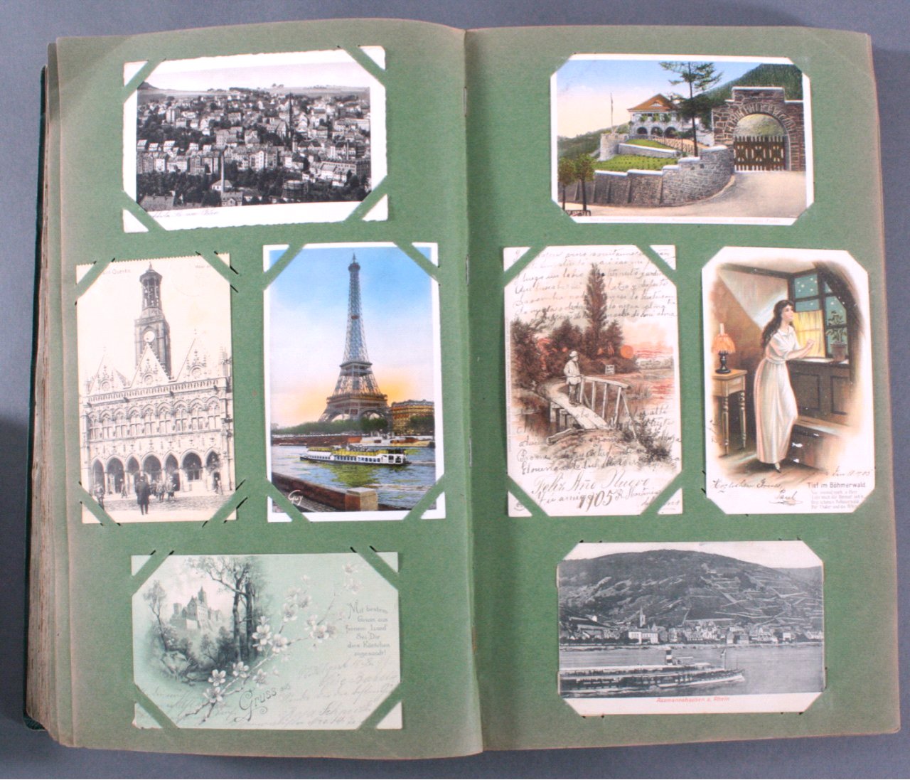 Prall gefülltes Album mit ca. 390 Postkarten