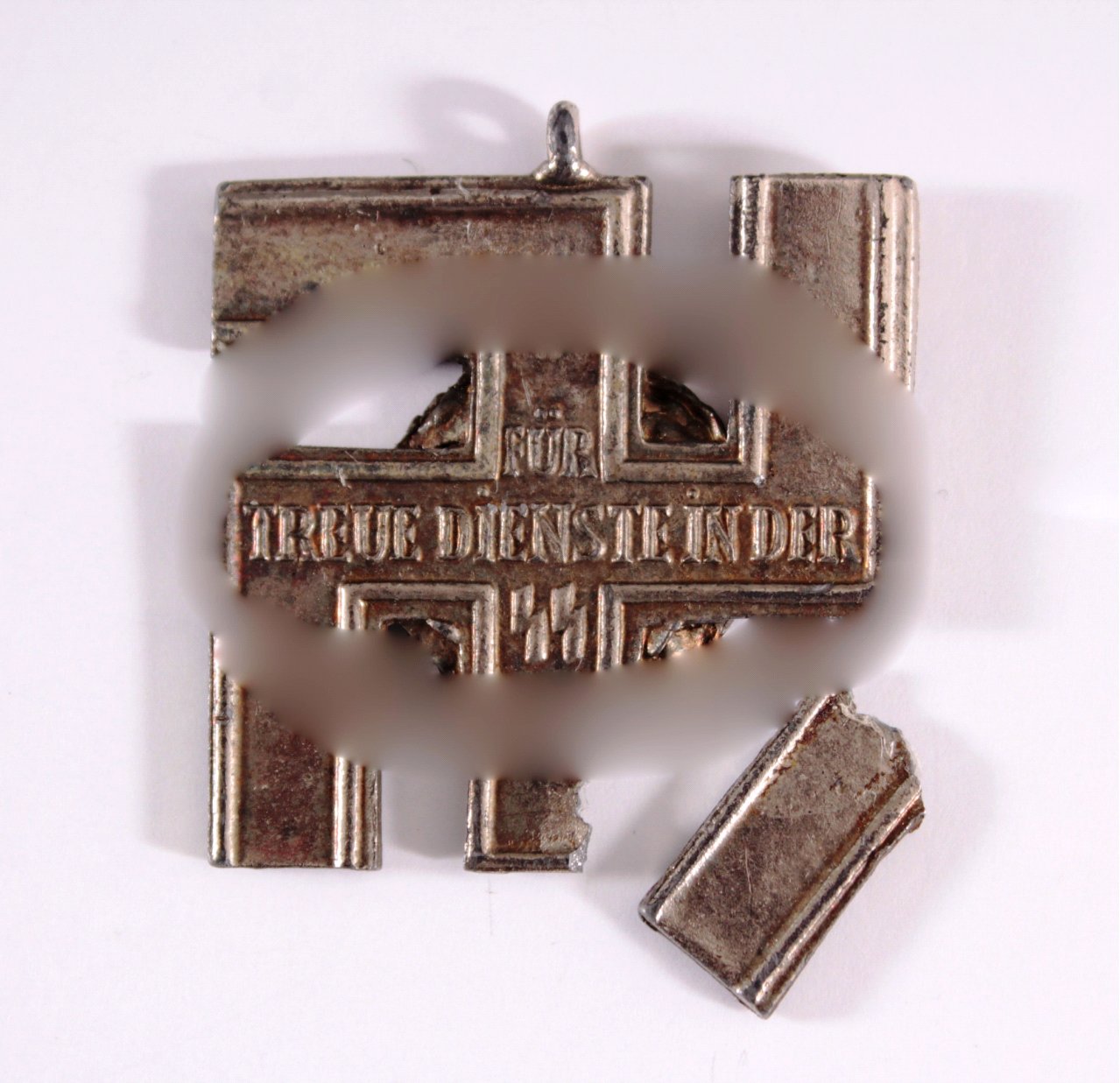 Kreuz für 12 Jahre, versilbert, beschädigt, kleines Bruchstück fehlt, ca. 3,8 cm x 3,8 cm