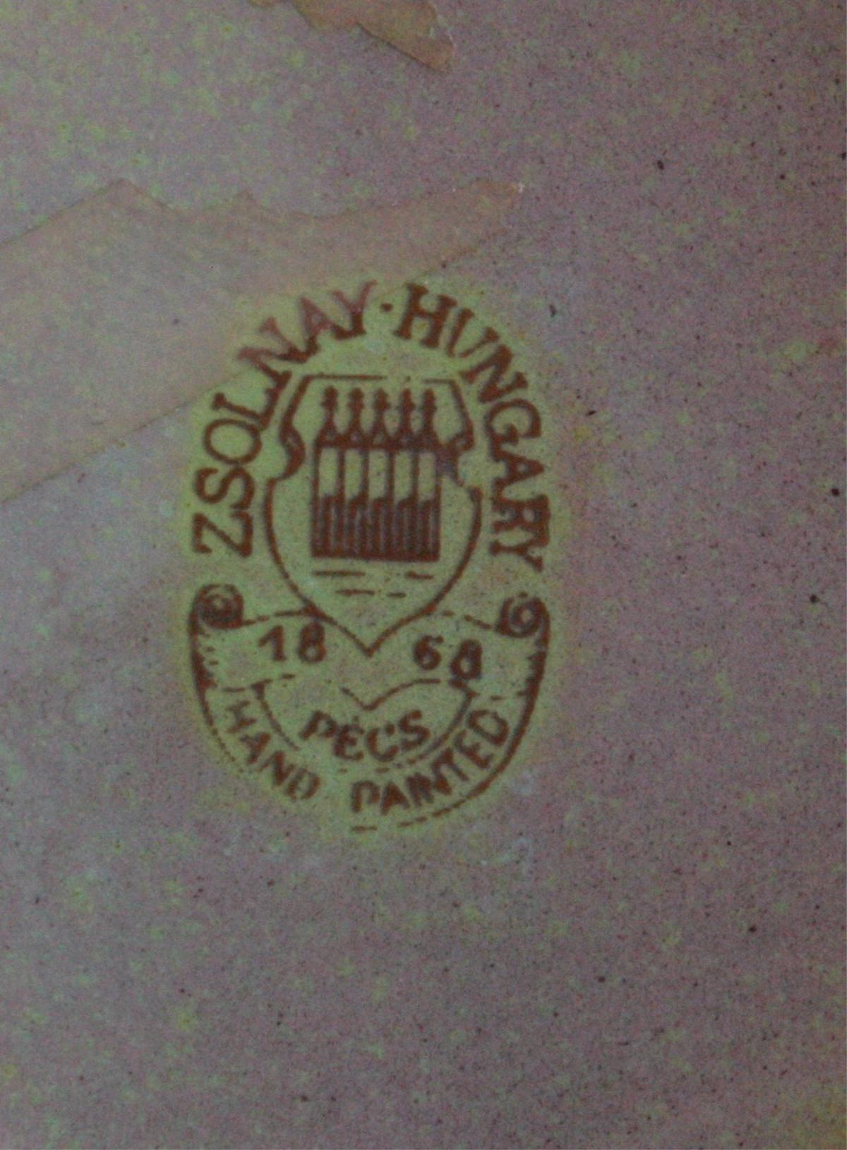 Eosinglasur, geschwungene Form, Fünfkirchenmarke, Zsolnay Hungary, ca. H- 8 cm, D- 12 cm