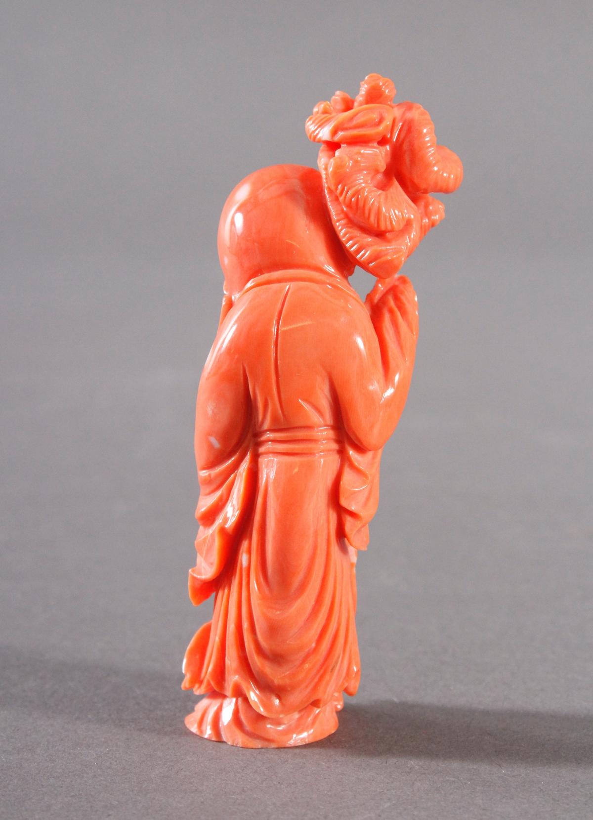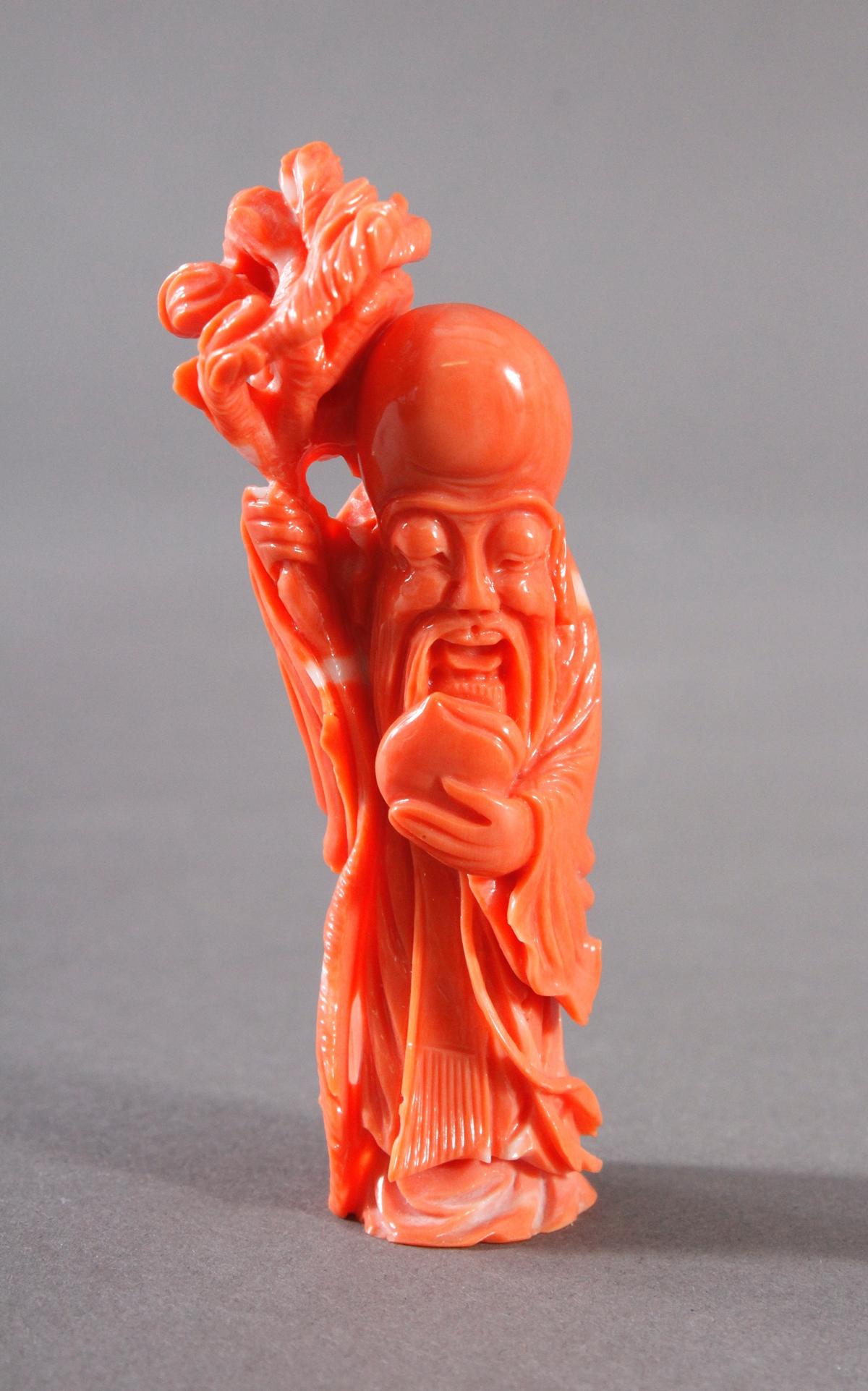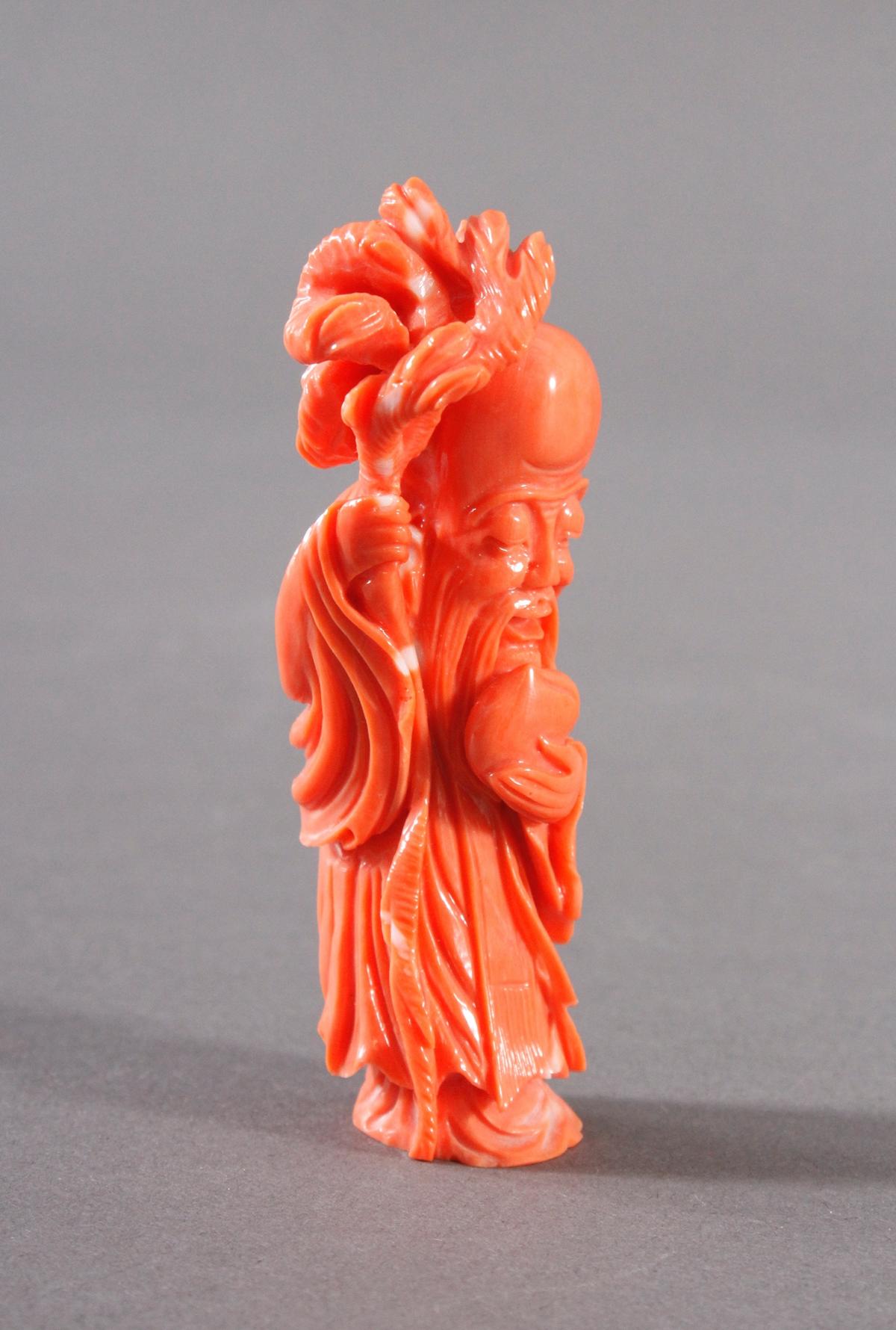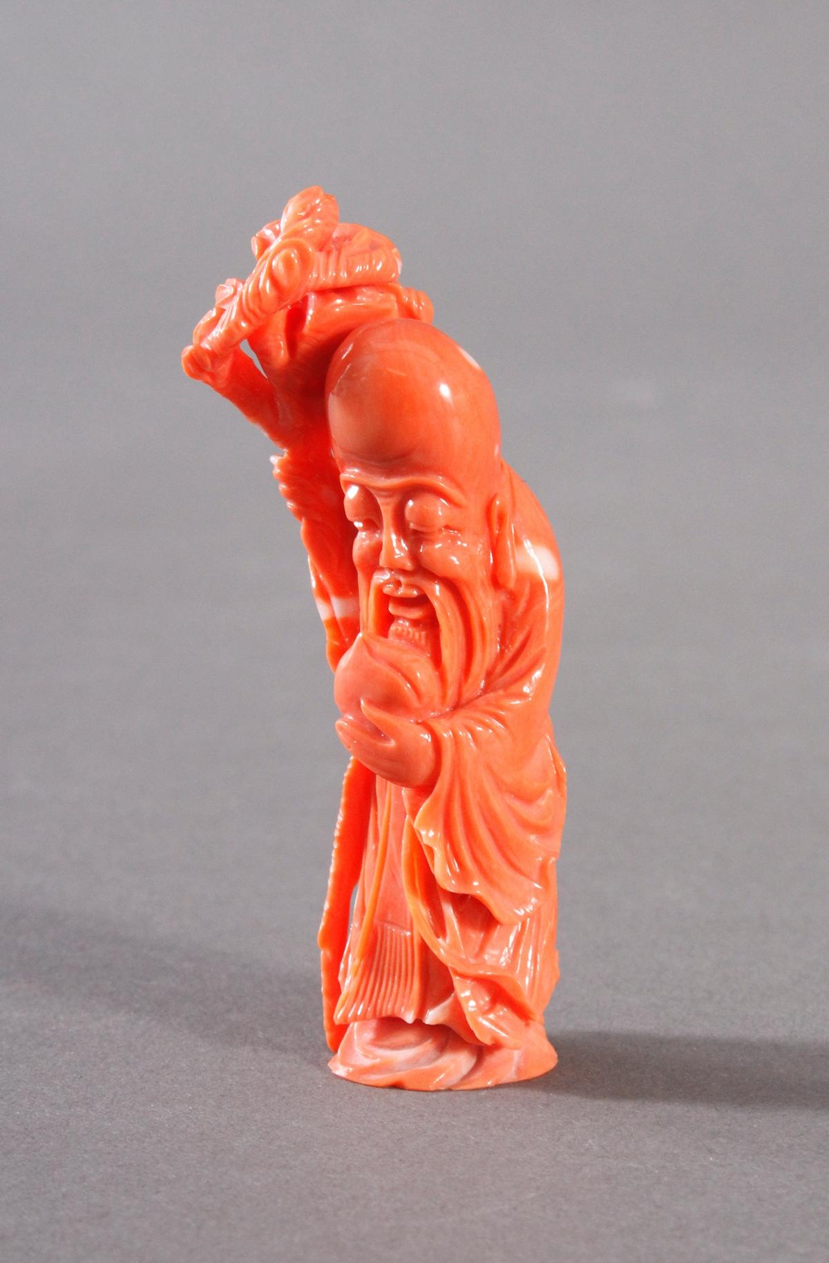 Alter Mann mit Stock aus roter Koralle geschnitzt