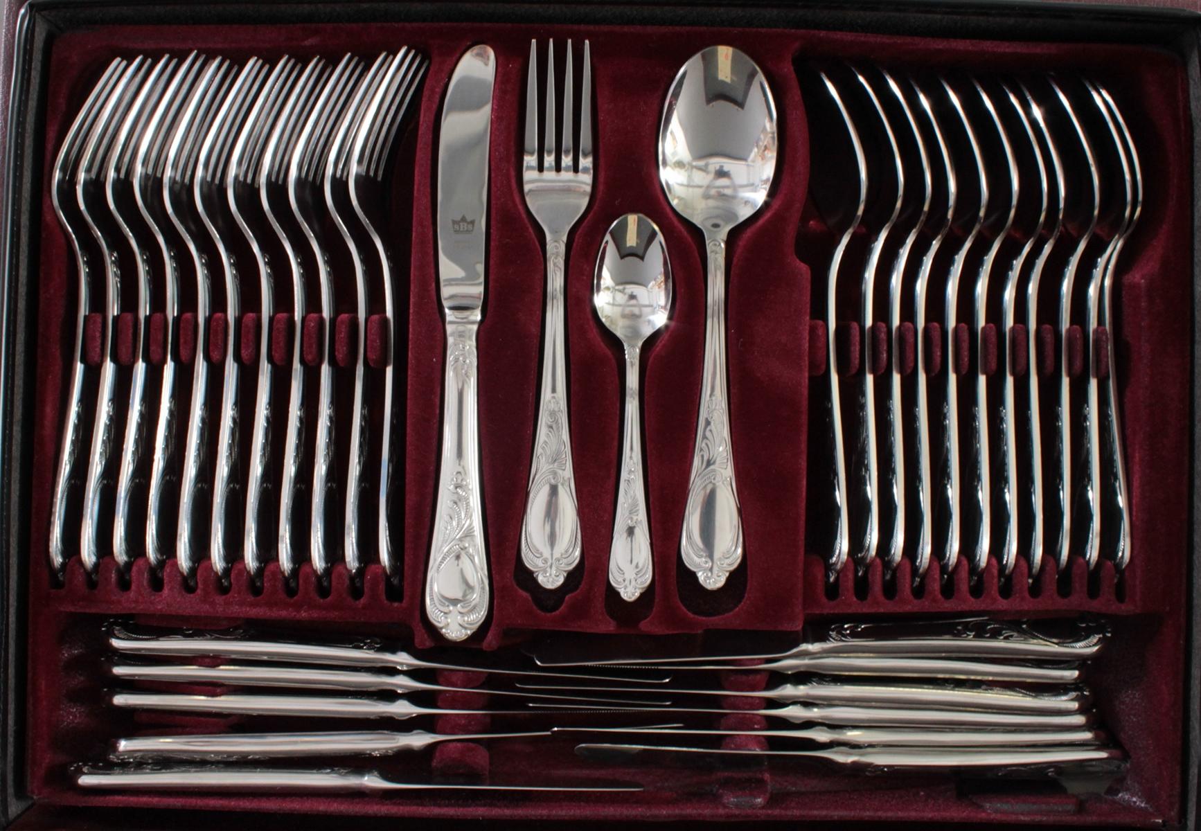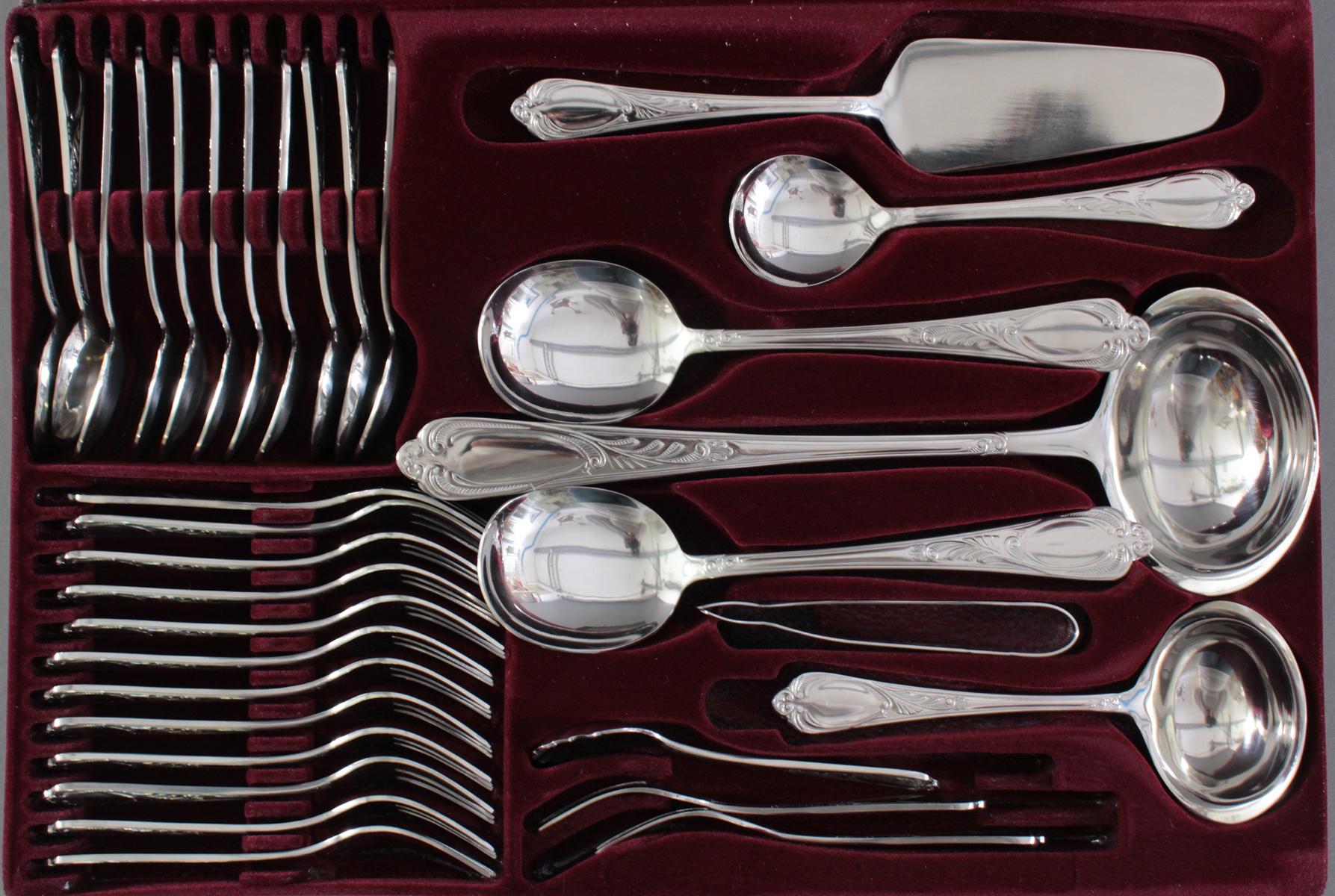 23 Karat hartvergoldet, für 12 Personen.70-teiliges Besteck im Besteckkasten