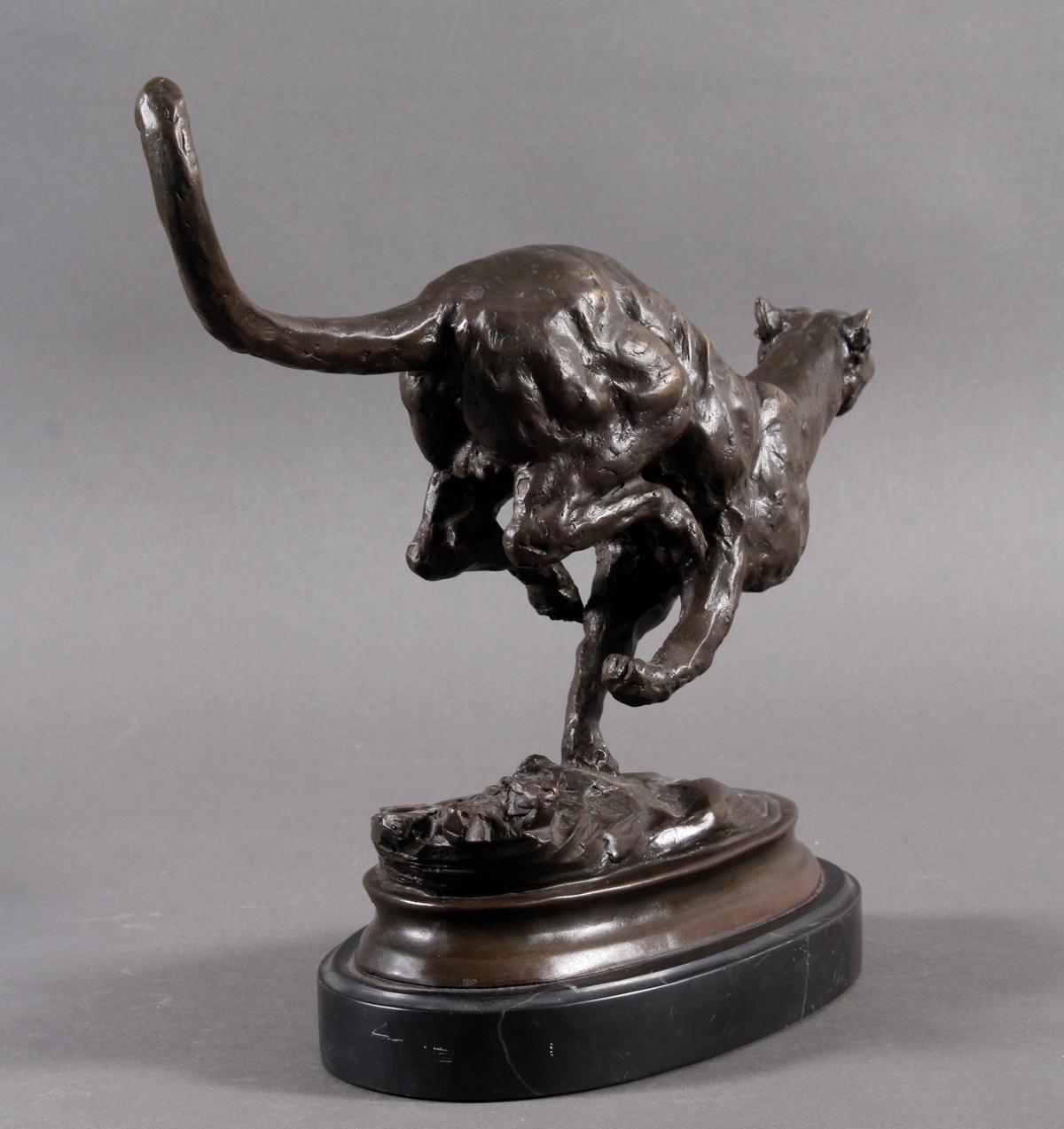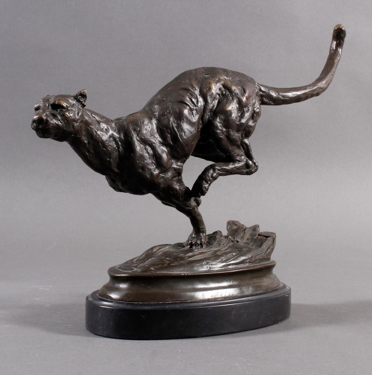 Bronzefigur, Jagender Gepard, Frankreich 20. Jahrhundert