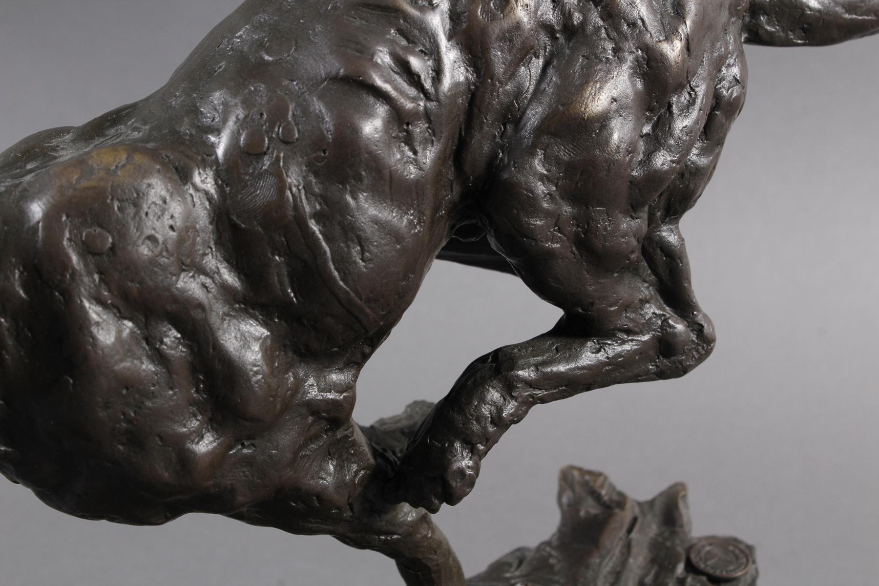Bronze patiniert. Auf schwarzem Steinsockel. Signiert ‚Milo‘ und Gießermarke ‚Fonderie, Bords de Seine‘. Höhe 30 cm, Länge ca. 40 cm.