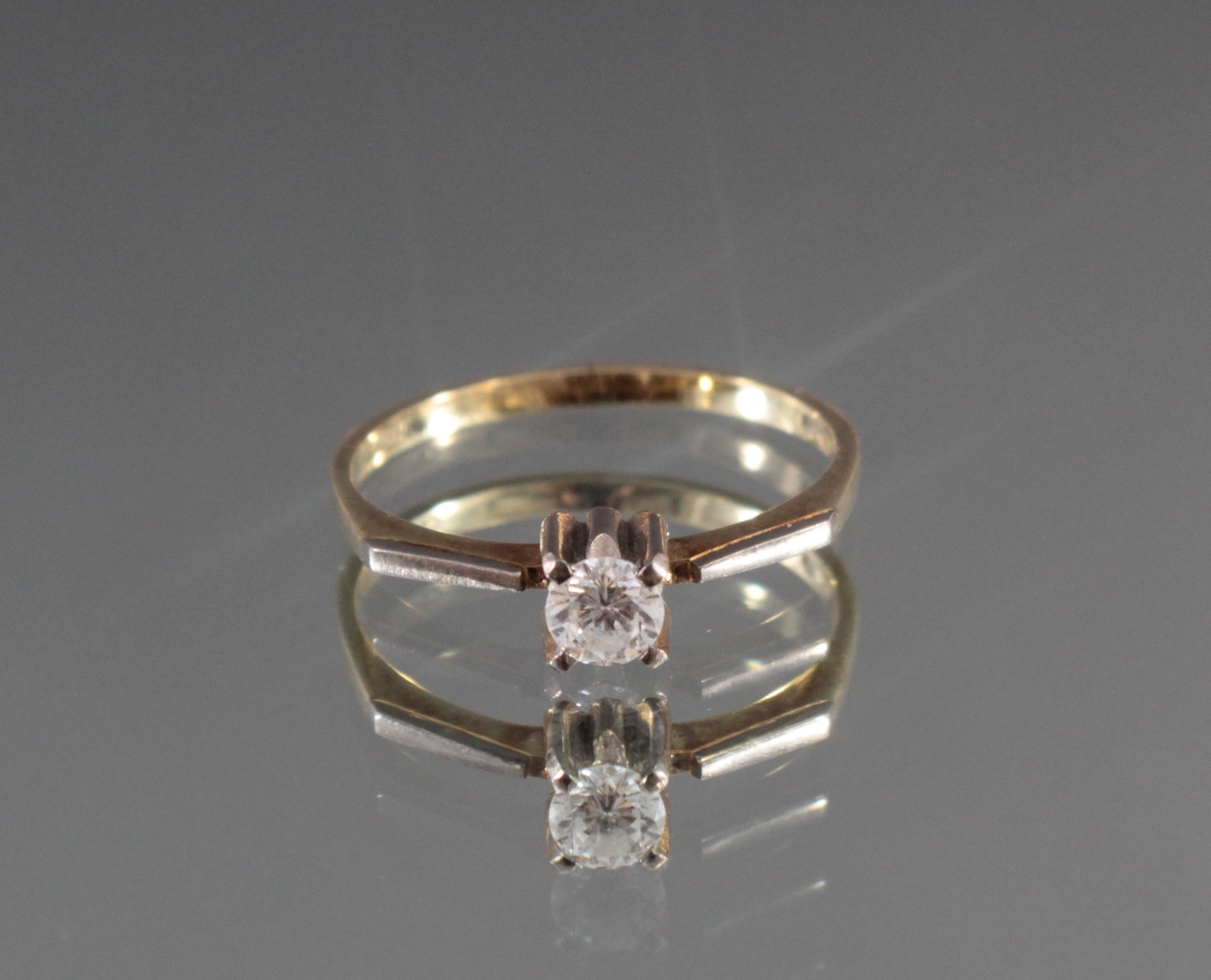 RG 55, punziert 585, Diamant von ca. 0,23 Karat, 2 g
