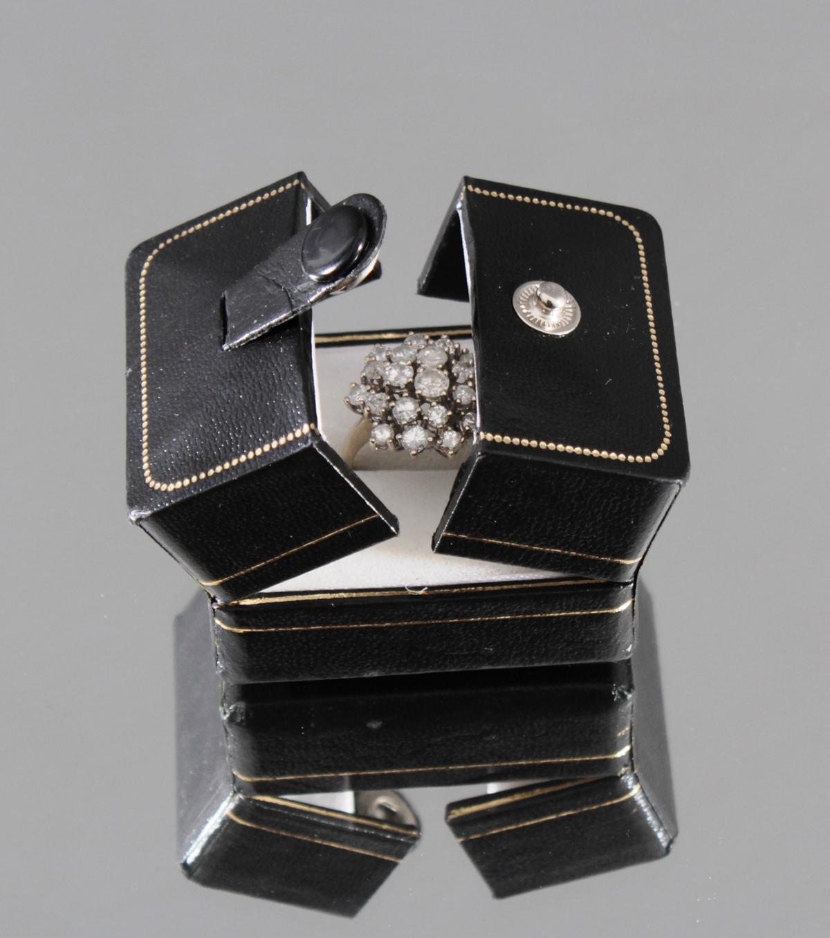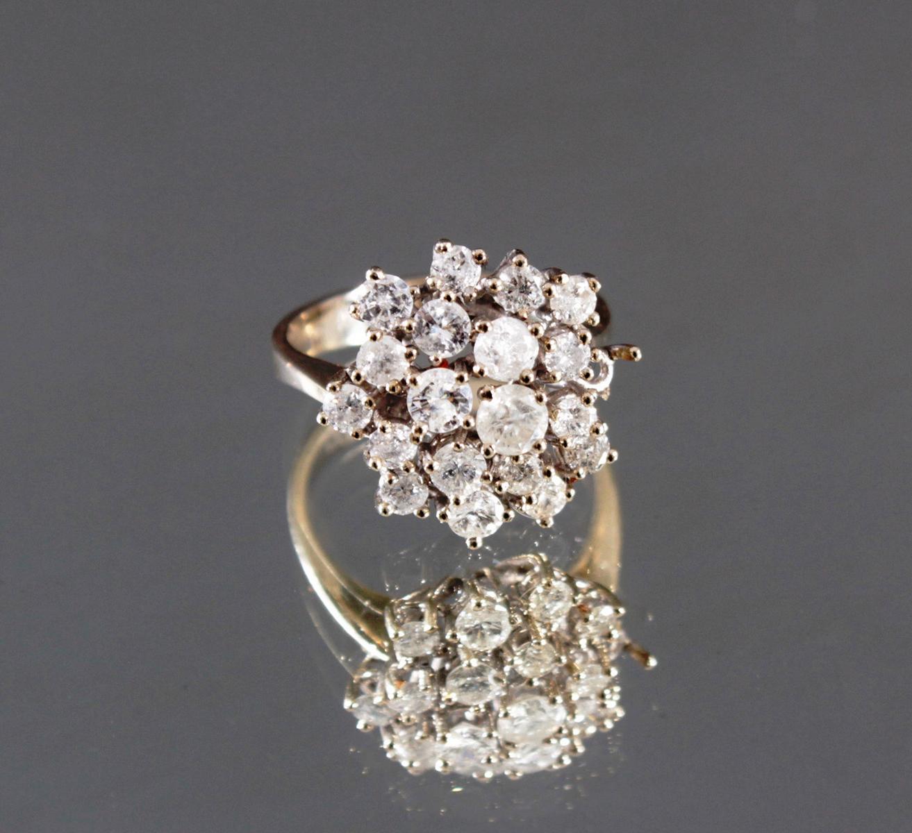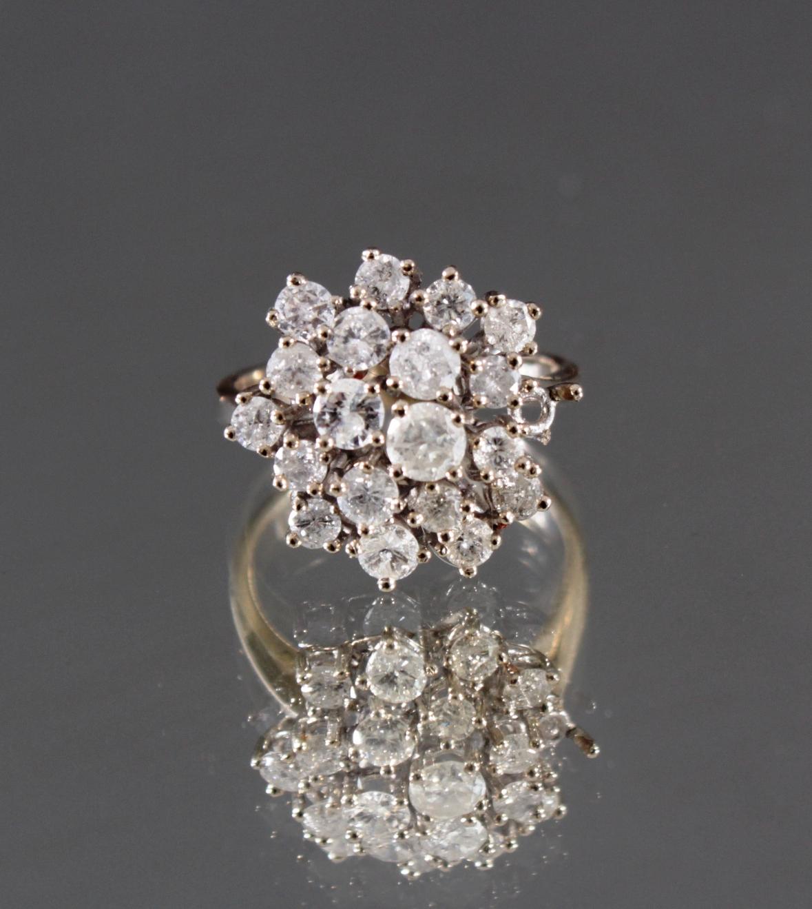 Besetzt mit 19 Diamanten, 1 Stein fehlt, insg. ca. 1,4 Karat, RG. 55, ca. 5,18 g