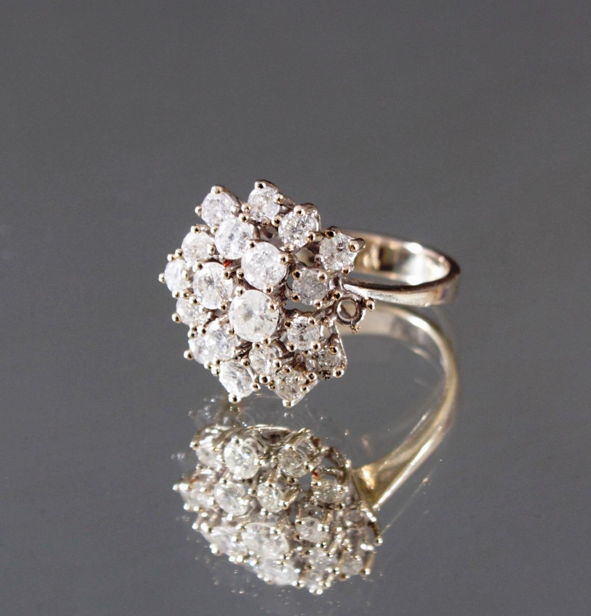 Damenring mit Diamanten 14 Karat Weißgold