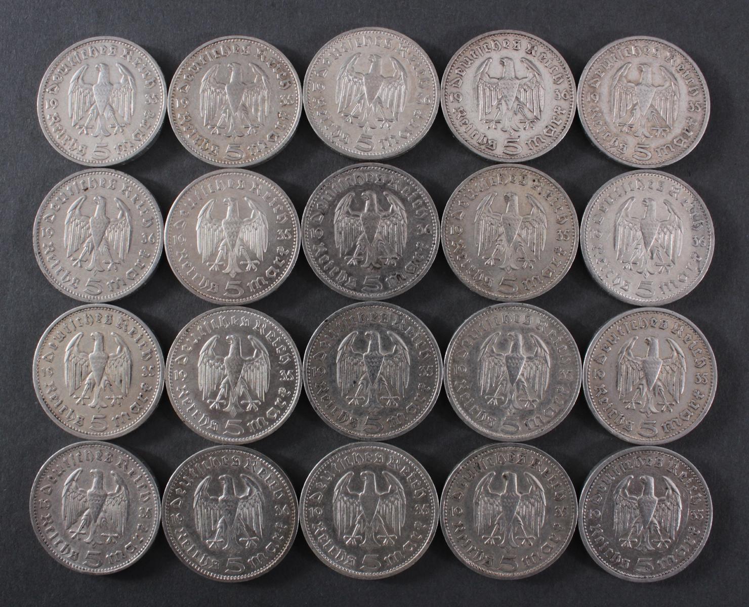 Deutsches Reich, 20x 5 Reichsmark 1935/36 Hindenburg