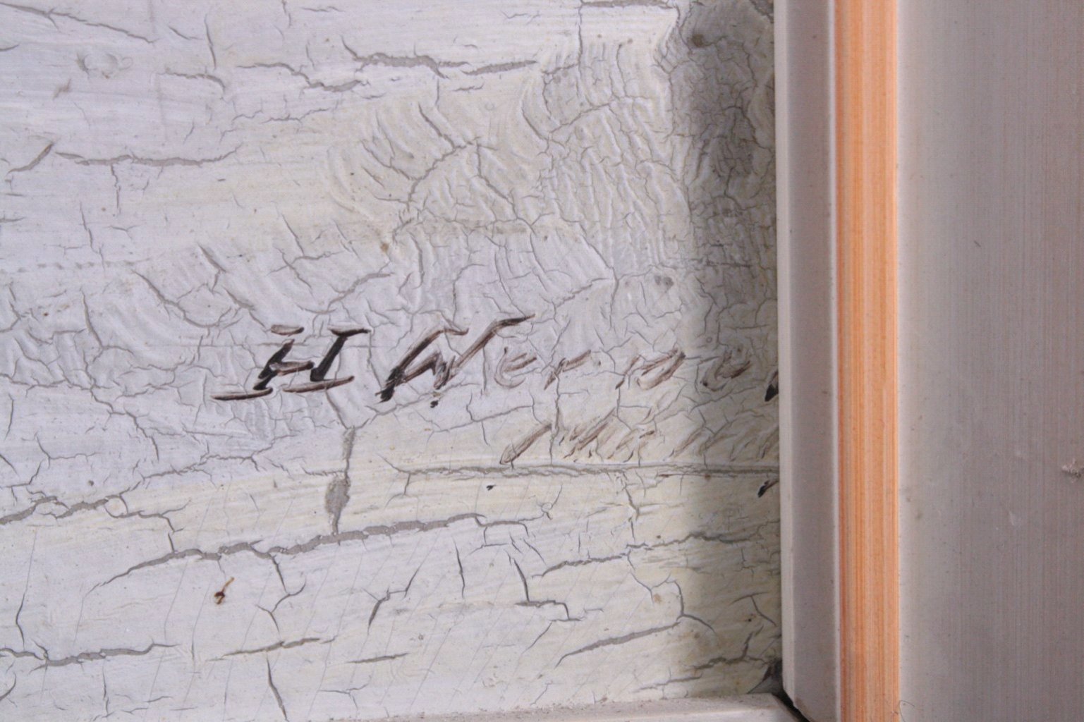 Öl / Leinwand, winterliche Dorflandschaft mit Personenstaffage, unten rechts signiert, gerahmt, Maße ca. 59,5 cm x 34 cm