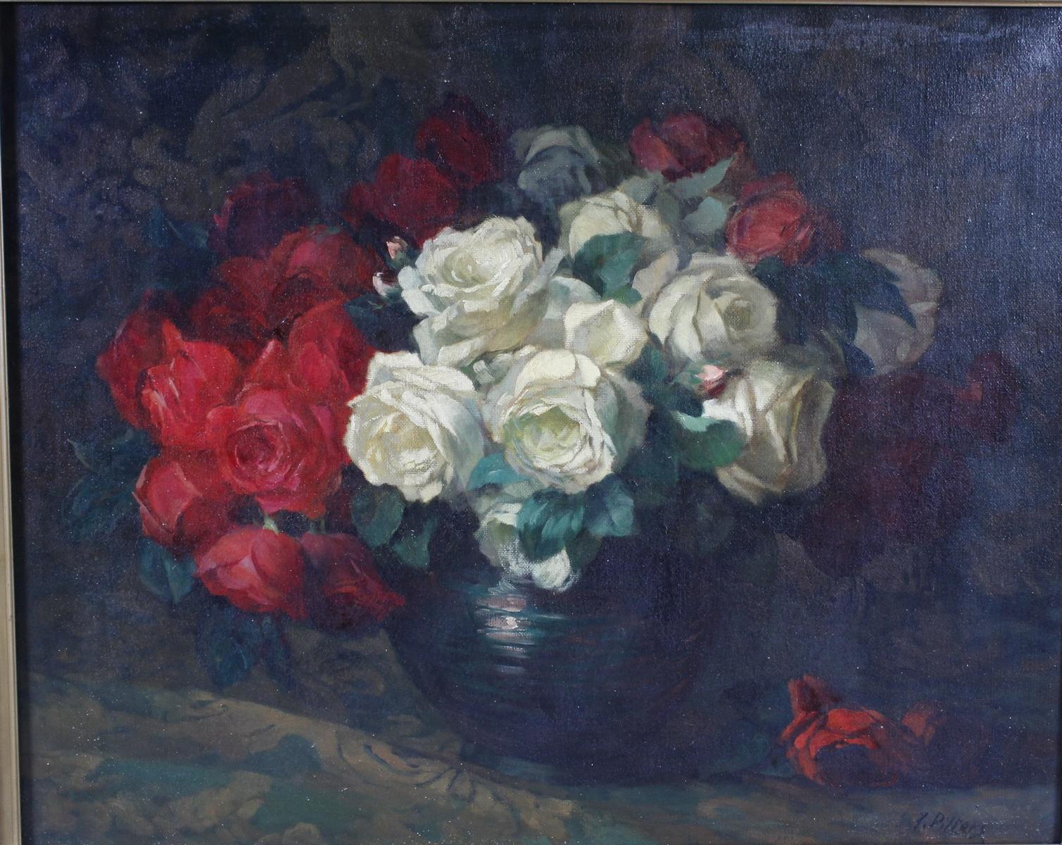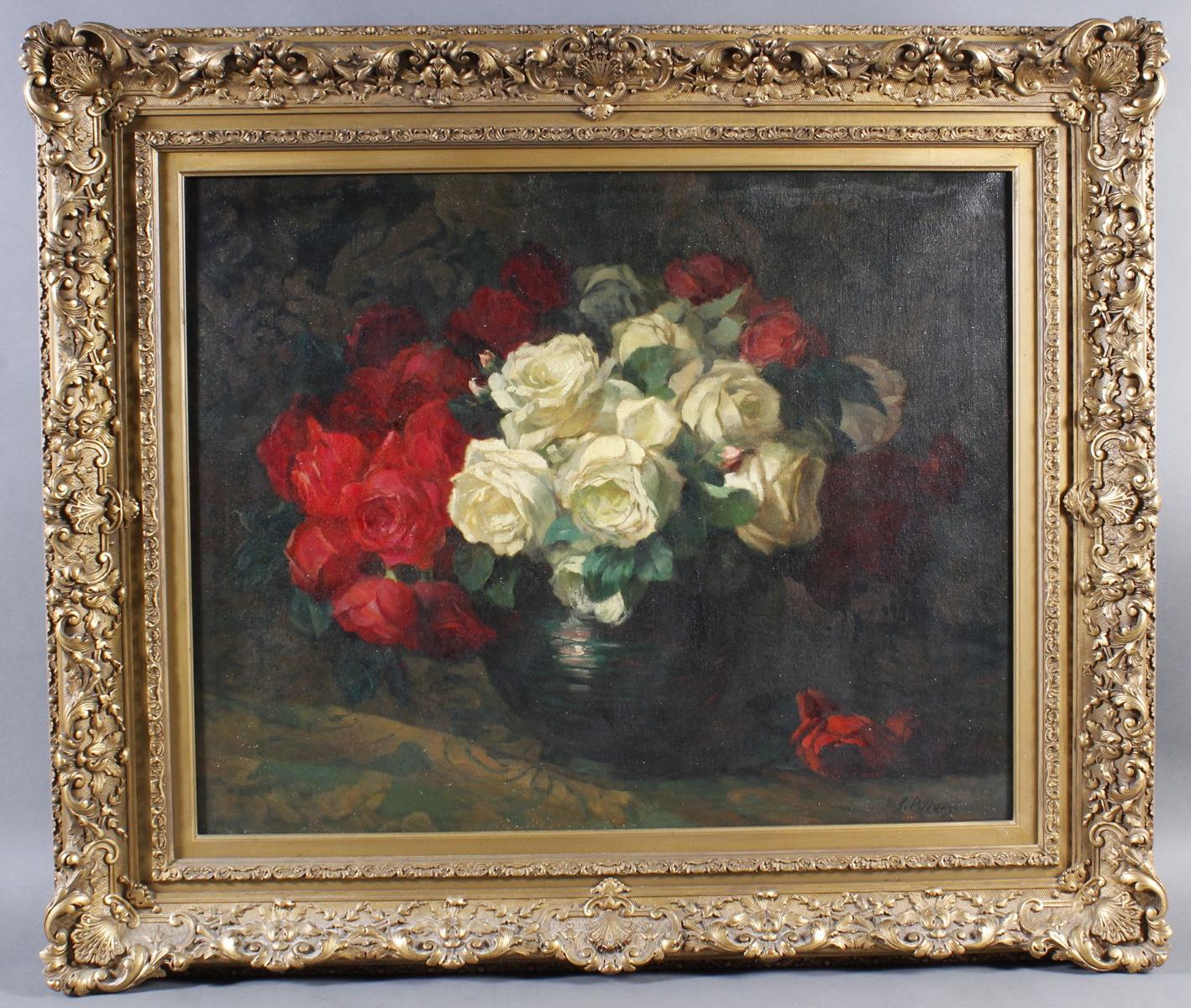 Öl auf Leinwand, ‚Stillleben mit weißen und roten Rosen‘, rechts unten signiert, ca. 74 x 60 cm, mit Rahmen ca. 100 x 85 cm