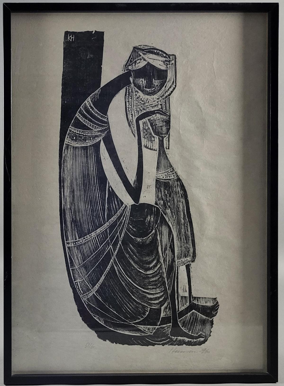 Holzschnitt, ‚Mãe Preta, schwarze Mutter mit Kind‘, rechts unten mit Bleistift signiert und datiert 1960, links nummeriert 51/60, oben monogrammiert KH, Gesamtmaß ca. 82 x 60 cm