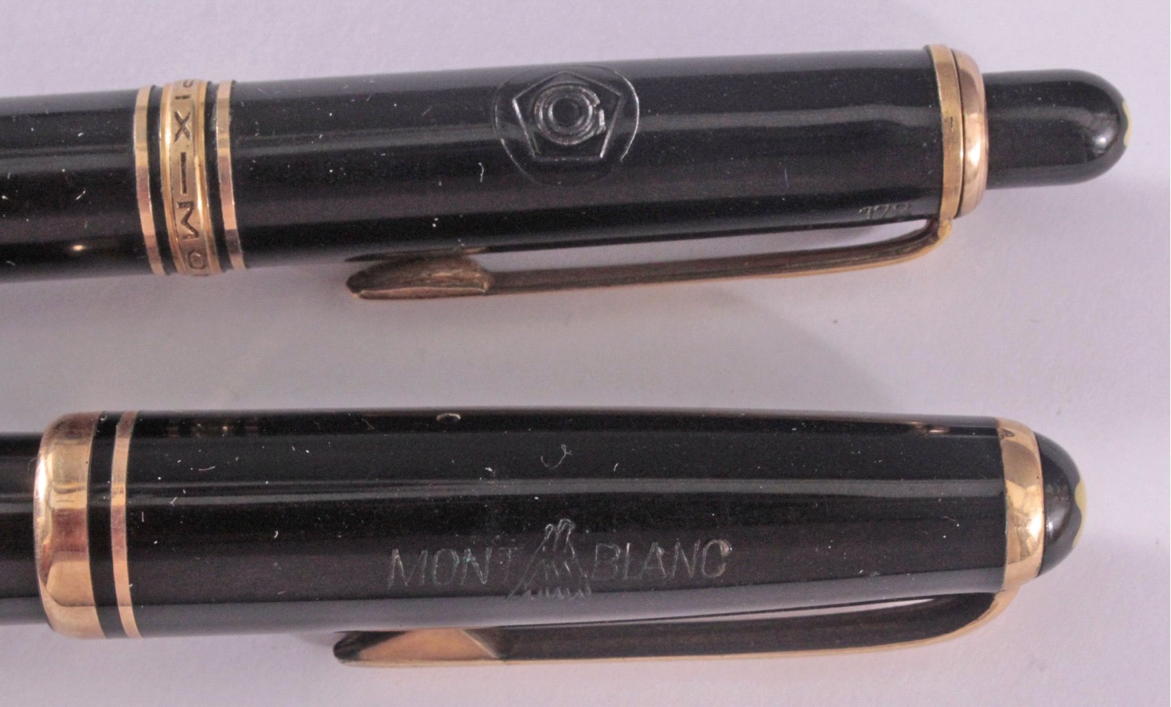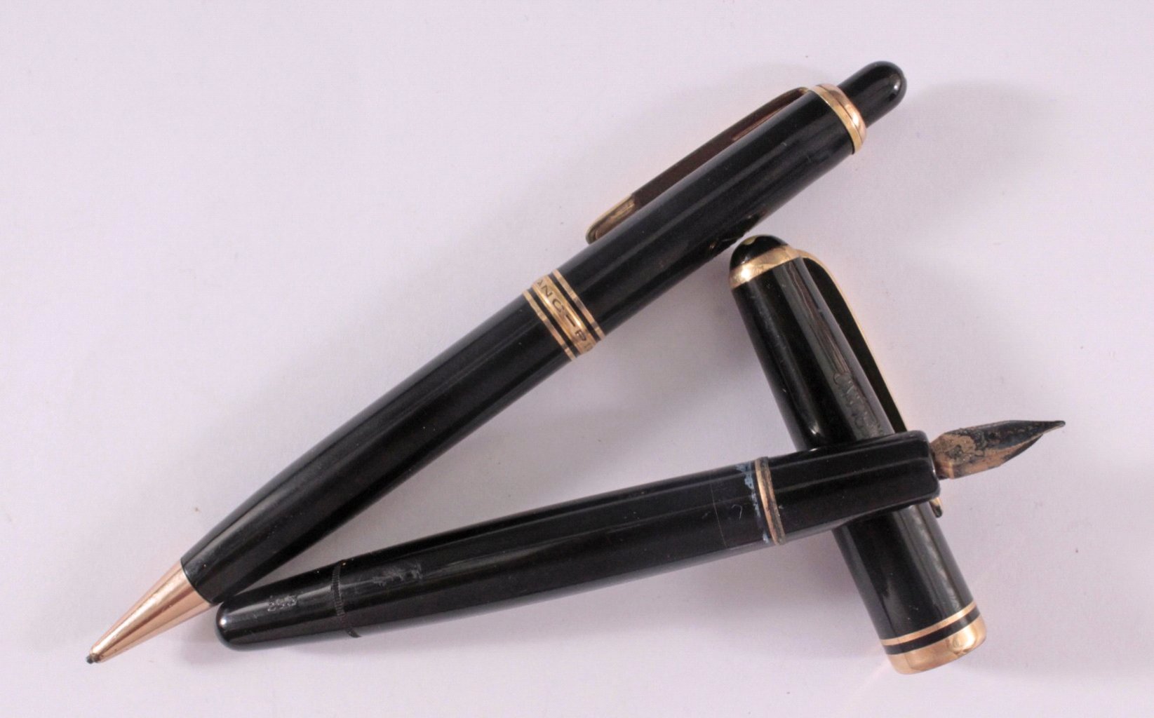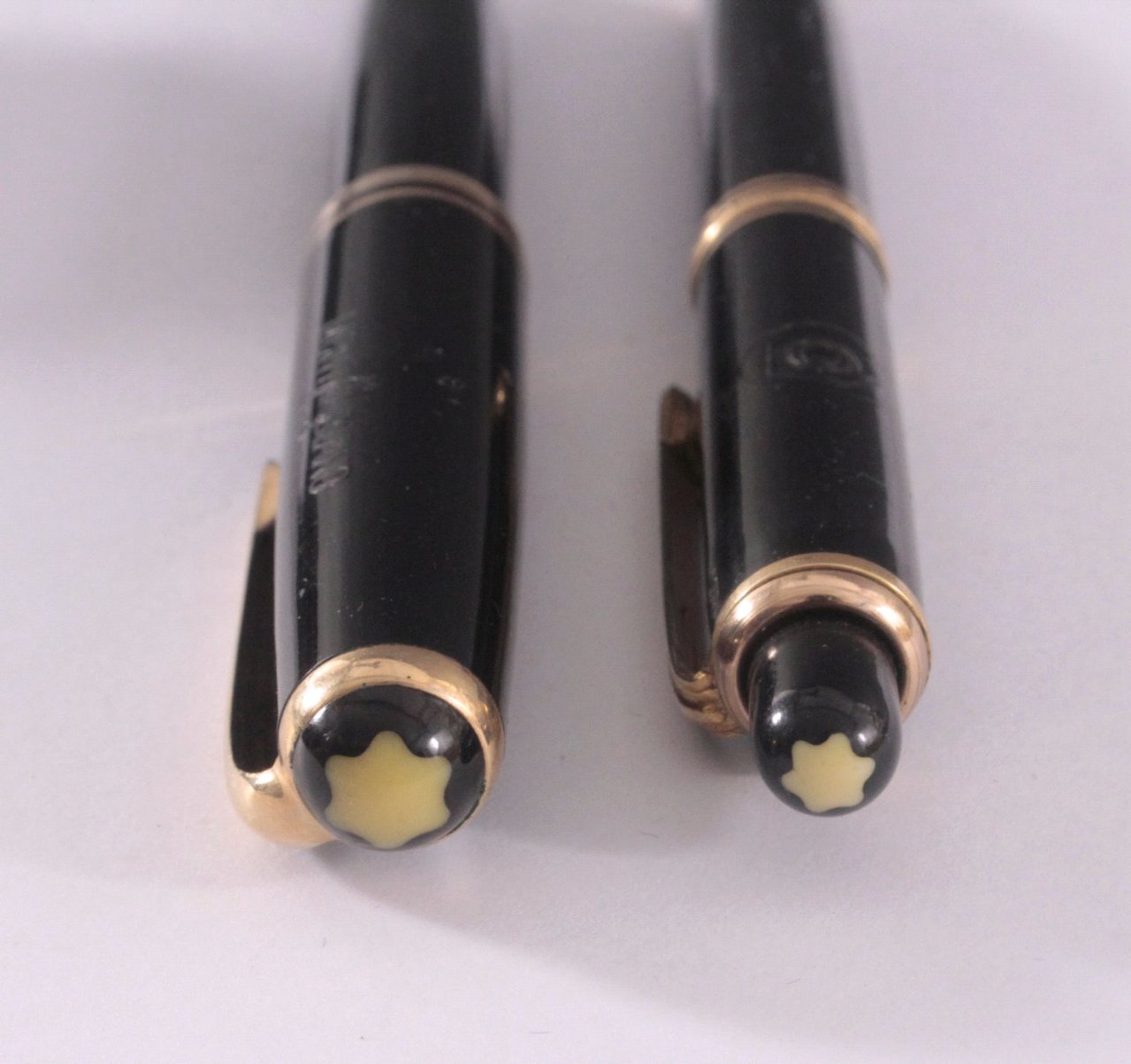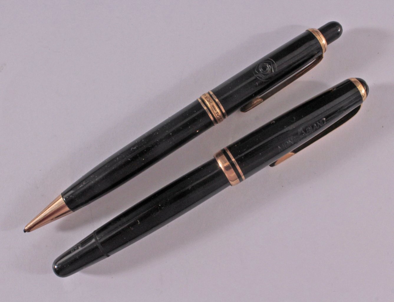 1 Kolbenfüller no. 252 mit 14 Karat Goldfeder. 1 Druckbleistift no. 172. in original Montblanc Etui, beide mit Gebrauchsspuren.