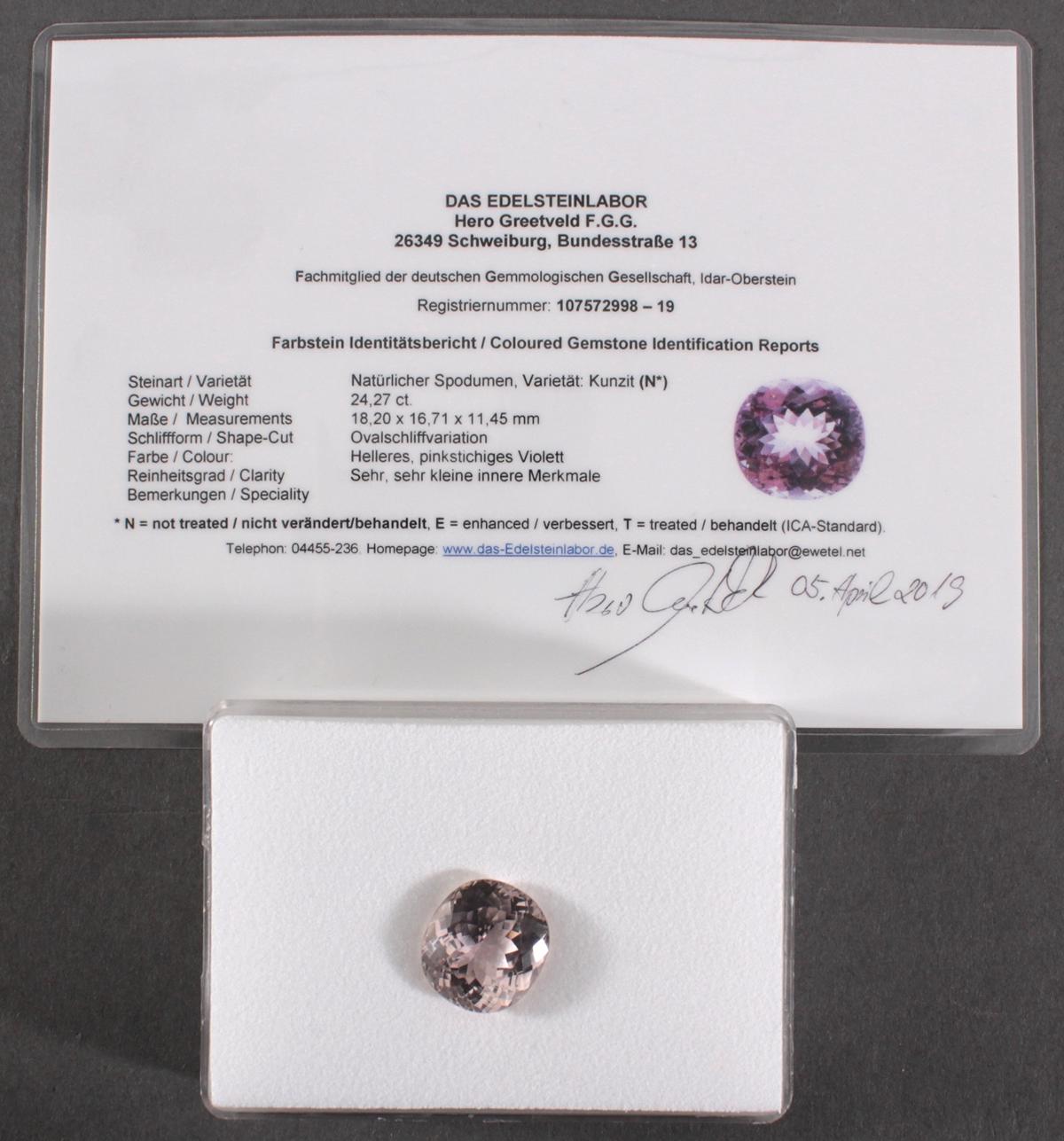 Mit aktueller Bekundung durch ein deutsches Edelsteinlabor, Ovalschliff, helleres, pinkstichiges Violett, ca. 18,20 x 16,71 x 11,45 mm