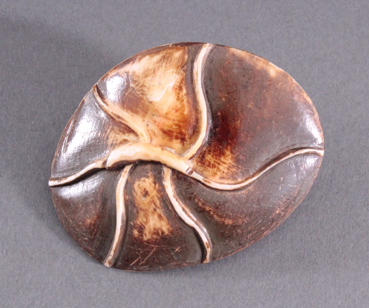 Vollplastische Schnitzerei, Schlange und Ratte auf einem Lotusblatt, ca. 1,8 x 5,5 x 4,4 cm.