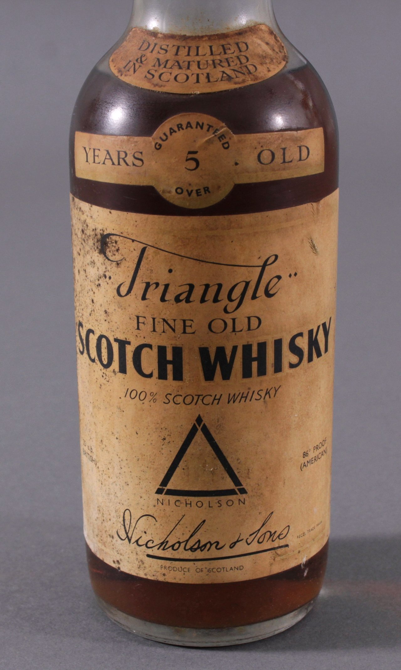 Triangle fie old Whiskey, Flasche ist im Originalzustand, Siegel unbeschädigt, minimaler Flüssigkeitsverlust
