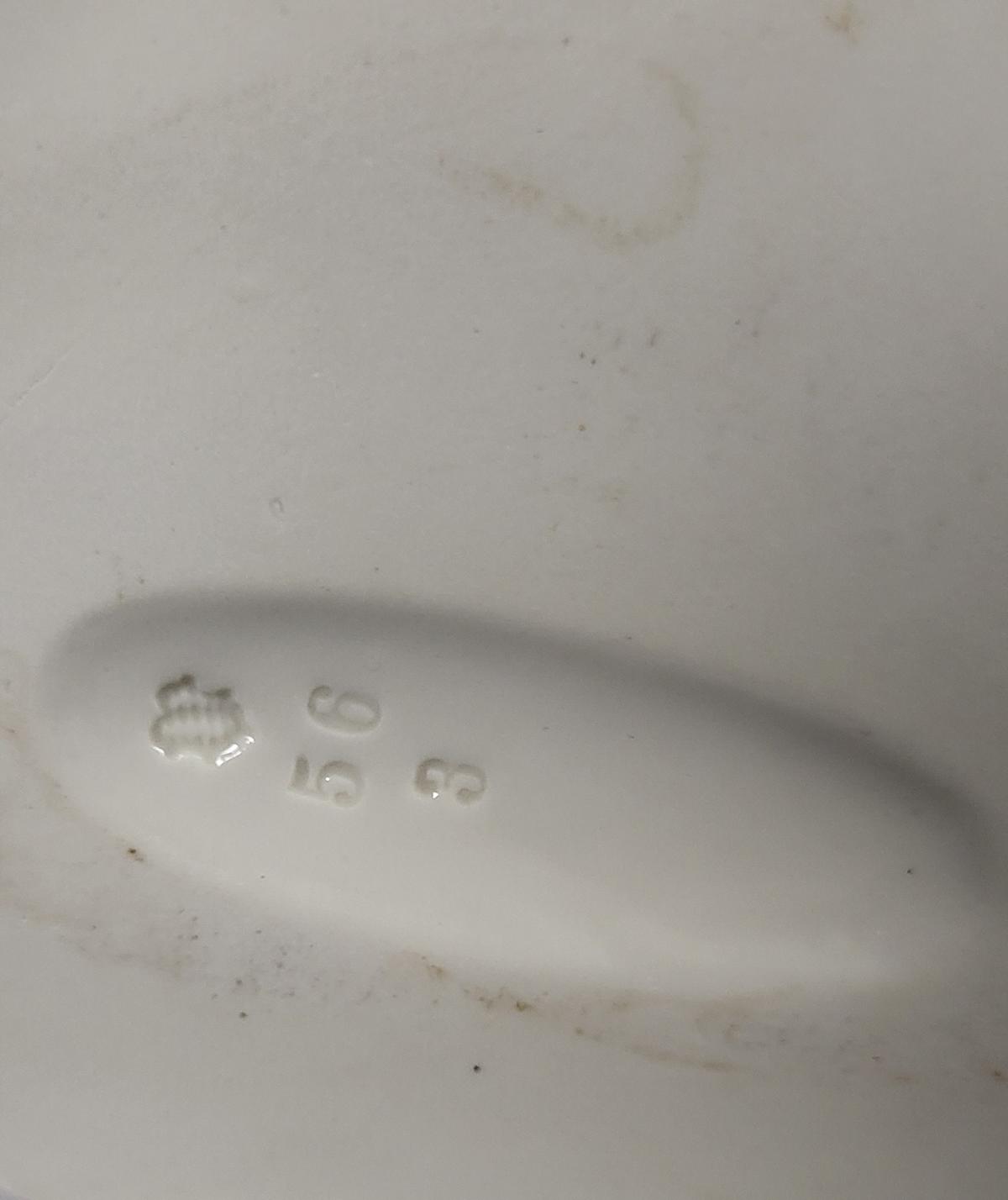 Porzellan, polychrom und goldbemalt. Gepresstes Rautenschild Nymphenburg, Modellnummer 56. Nach Entwurf von F. A. Bustelli, Höhe ca. 16 cm