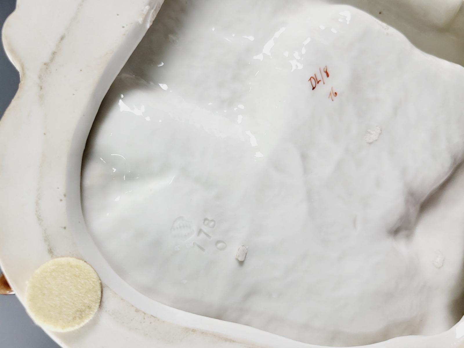 Porzellan, Reich staffiert in bunter Aufglasurbemalung und Gold. Gepresstes Rautenschild Nymphenburg, Modellnummer 778/II. Nach Entwurf von F. A. Bustelli, ca. 28 x 23 x 22 cm