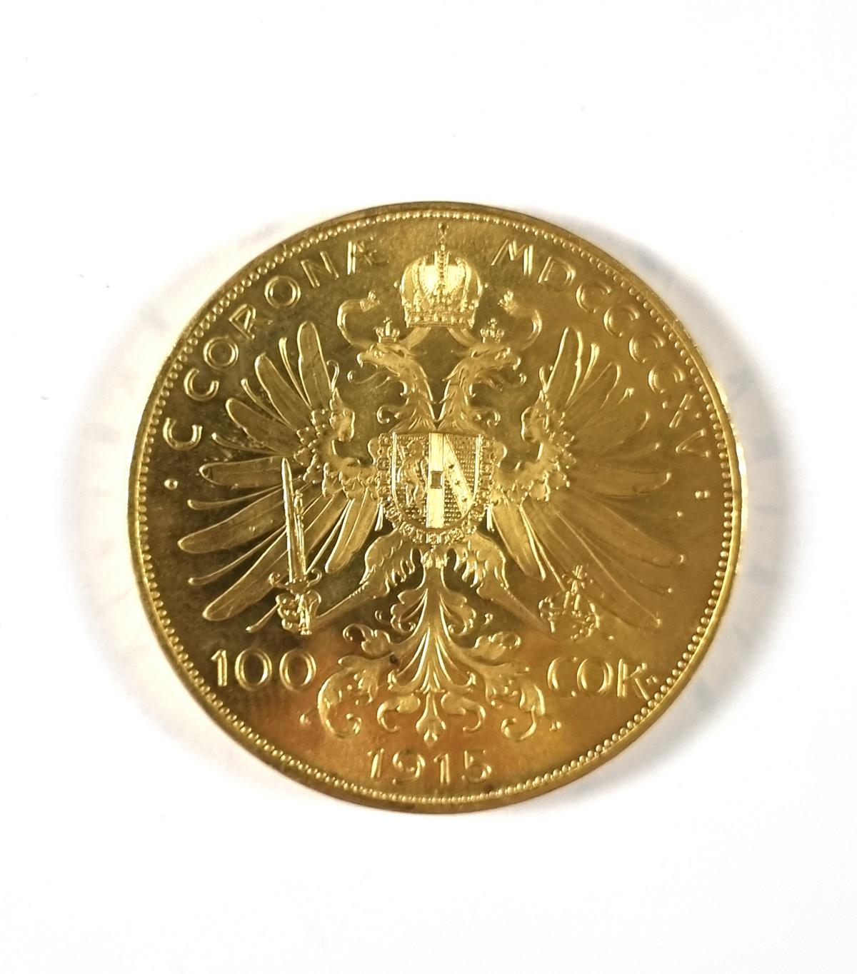 100 Kronen Österreich Goldmünze Kaiser Franz Joseph 1915, Feinheit 900, 33,77 g.