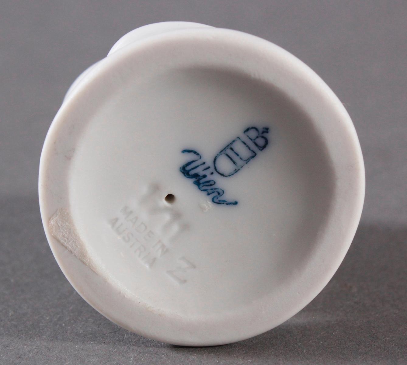 Weißporzellan, glasiert, unter Stand mit blauer Unterglasur-Manfakturmarke, geprägte Modell-Nr. 1711 Made in Austria Z, ca H-5 cm